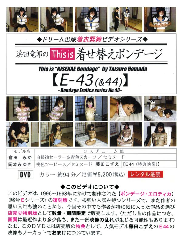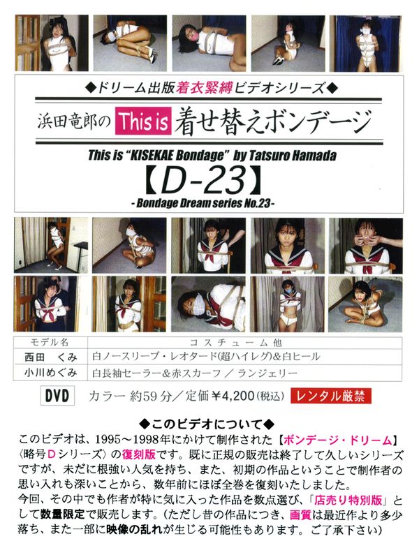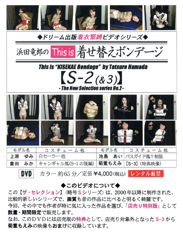 | 【店売り版DVDの「回収品」臨時販売について】 ◆当社のDVDはその大部分が【直販 (=通販)】で販売されているのはご承知の通りですが、 ごく一部の作品に限り、マニア向けのアダルト書店(お馴染み「タイヨー」ほか15店舗)でも 委託販売しております。 ◆ネット通販をご利用頂けないお客様もまだ多く、本当はもっと委託店の数を増やしたかったの ですが、既報の通り、浜田の本業の方で「取引先の倒産」という予期せぬなアクシデントが ここ数年間で立て続けに発生。 その余波でこちら緊縛関係の業務も、このまま従来通りの営業を続けて行くのは極めて難しい 状況になりました。 (因みにこの緊縛業、あくまでも浜田の趣味で“損得抜きに”行なっていた副業で、収支も ほとんど毎月赤字かトントンなのを、本業の方でずっと支えて来た次第。 頼みであった母体が炎上すれば、こちらにも火が回るのは当然であります) ◆そんな訳で、これまで本業・副業とも往生際悪く粘って来た浜田も、まず2013年の秋をもって 本業の方から完全撤退。 こちら緊縛ビデオの販売についても、これから少しずつ営業規模を縮小せねばならぬ状況に なり、その第1弾として、15店舗あった委託店の数を2013年秋をもって半分に減らしました。 店舗を大幅に減らした理由は、浜田の今後が極めて不透明で、この世界からいつ消えても 不思議ではなく、もし突然そうなった場合、一度に全店舗の商品が戻って来ても対応できない からです。 また(これは現時点では全く白紙ですが)幸いに誰か適当な後継者を見つけ、浜田が消えた後も 営業継続ができたとしても、マンパワーの低下は避けられず、とても現在の15店をキープする のは難しいと思います。 よって、将来どう転ぶにせよ、早めに店舗数を減らすことにで "後顧の憂い" を少しでも断って おきたい…というのが理由です。 ◆という事で、とりあえず商品引き上げが決まった7店舗分の在庫、約900本が2013年の10〜 11月に返品されました。 さすがにこれだけあると短期間に尋常な方法で在庫を捌くのは不可能。 そこで、今まで正価でご購入下さった方には大変申し訳ないのですが、万一最悪のシナリオに なり、処理できず「産業廃棄物」にするよりは…と、不本意ながら今回の回収品に限り、 在庫限りの【特価販売】を行なうことにしました。 ◆すでに【DVD用ショッピングカート】にはこれら「回収品」をセット済みですので、 興味をお持ちの方はぜひご覧下さい。 (回収特売品はカートの商品カテゴリの最上部にあります) また、下の「作品一覧表」でも、現在特価販売の対象となっている全作品のラインナップを ご覧頂けます。 《注1》下の作品リストで「販売未定」となっている商品は、まだ店売りを開始していないか、 もしくは特売するのに充分な在庫が回収できていない品です。 早めに回収が進めば間に合うかも知れませんが、12月に近づくようですと、これらの 特販は難しいかも知れません。 その辺はこまめにショッピングカートをチェックして頂ければと思います。 なお、もし特販ができない場合は、誠に申し訳ありませんが「正規品 (=直販品)」の 方をお求め下さい。 《注2》回収品といっても、もちろん正常な品です。せいぜいジャケットが少し日焼け (蛍光灯 焼け?) している可能性があるだけで、中身に問題はありません。 《注3》万一ケースが破損したり、汚れがひどい場合は、通販品と同じ普通のプラケース (CDなどが入っている一般的なもの)に入れ替えてお送りすることもあります。 この場合、ジャケットはケースから出して同封する形になりますが、特価での処分品と いうことで、その辺の不便はご容赦下さい) 《注4》お住まいの関係などでジャケットがない方が都合のよいお客様は、ご注文時の備考に その旨記載して下されば、お送りしません。 ◆なお、本セールは、普通の商店が在庫処分のために行なう「ワゴンセール」のようなもの。 よって、その時点で「在庫のある品」だけが販売対象になります。 売り切れた品はショッピングカートから即座に削除されますが、別の店舗からまた引き上げ品が 戻って来たら一時的に復活することもあり、在庫は非常に流動的です。 (また、在庫の多寡により、一部の商品については価格見直しの可能性もあります) と言っても、各店舗からの「回収品」のみが対象ですので、数に限りがあることは事実。 ご希望の品が売り切れてしまった時は、どうかご容赦下さい。 ◆すでにこれらの品を正価でご購入下さった方には本当に申し訳ないのですが、なにぶん事情が 事情ですので、どうかご理解下さいますようお願い申し上げます。 ◆なお、今回の反響によっては(回収品の在庫がなくなった後も)この「店売り版」を通販で 継続して販売する可能性はあります。 ただしその場合、回収品ではなく正規品の販売となりますので、価格も「正価」(割引があると してもジャケットに記載された定価のせいぜい10%程度) になると思い